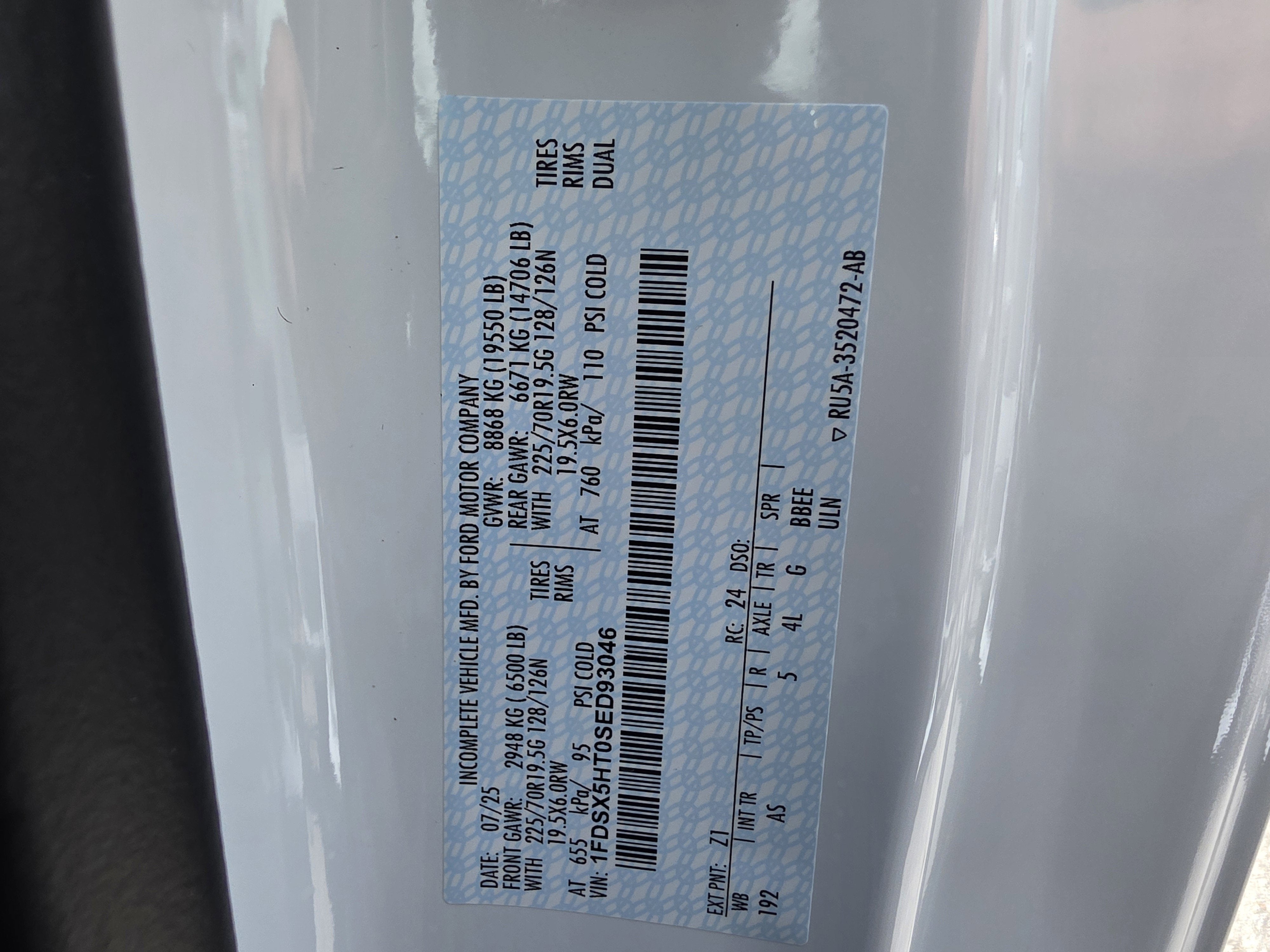 - Front Tire Size: LT225/70SR19.5
