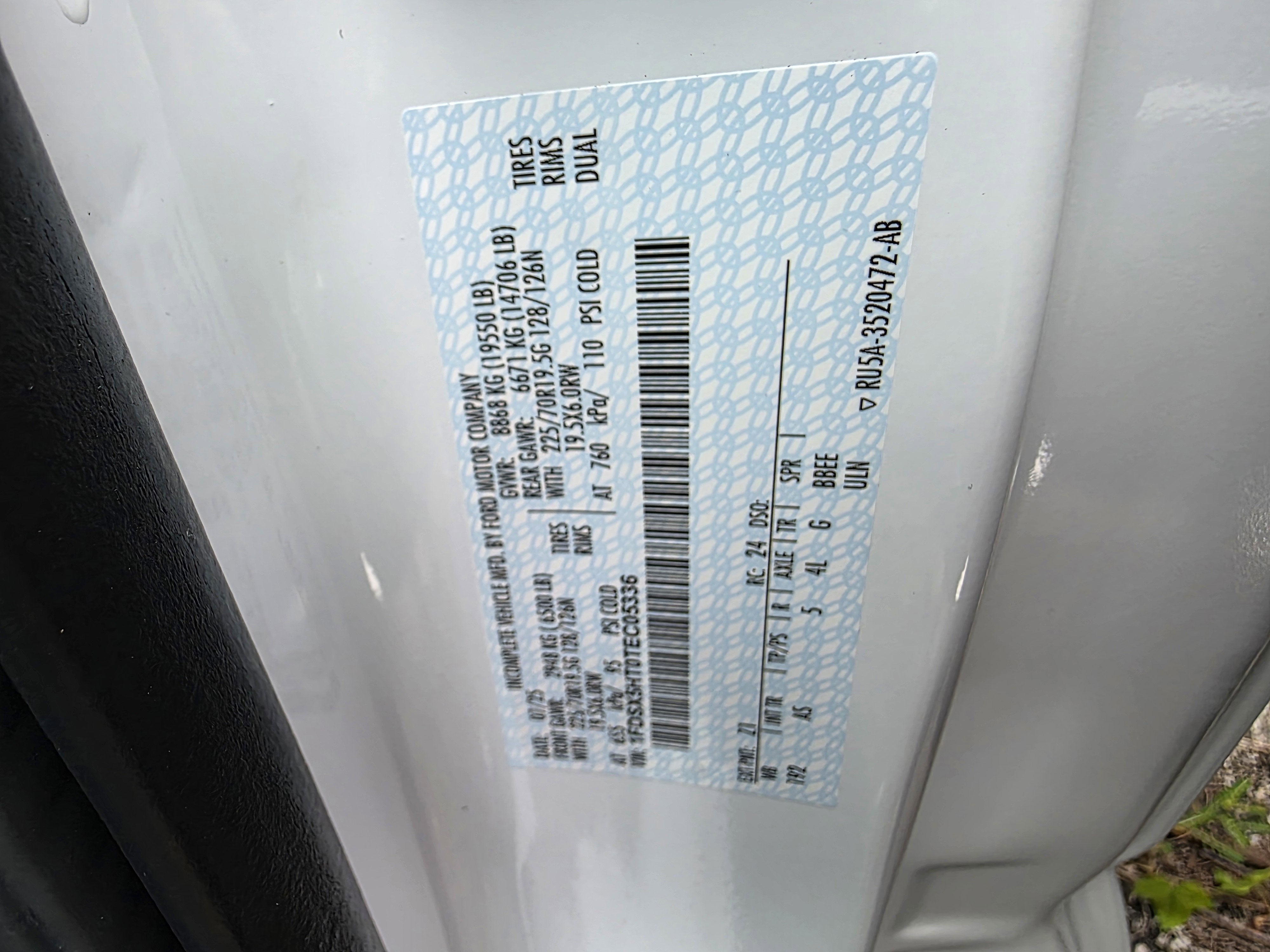 - Front Tire Size: LT225/70SR19.5