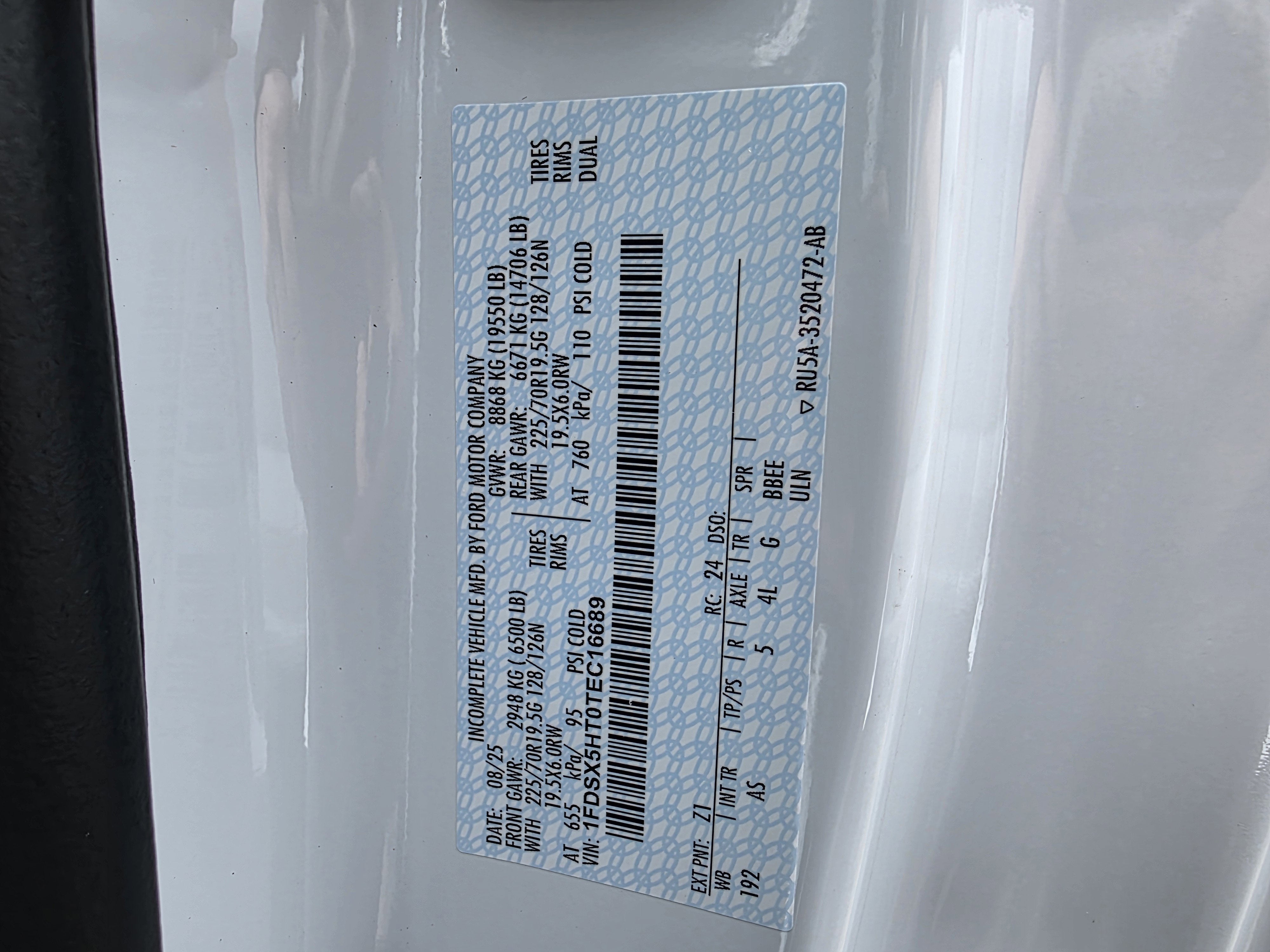- Rear Tire Size: LT225/70SR19.5