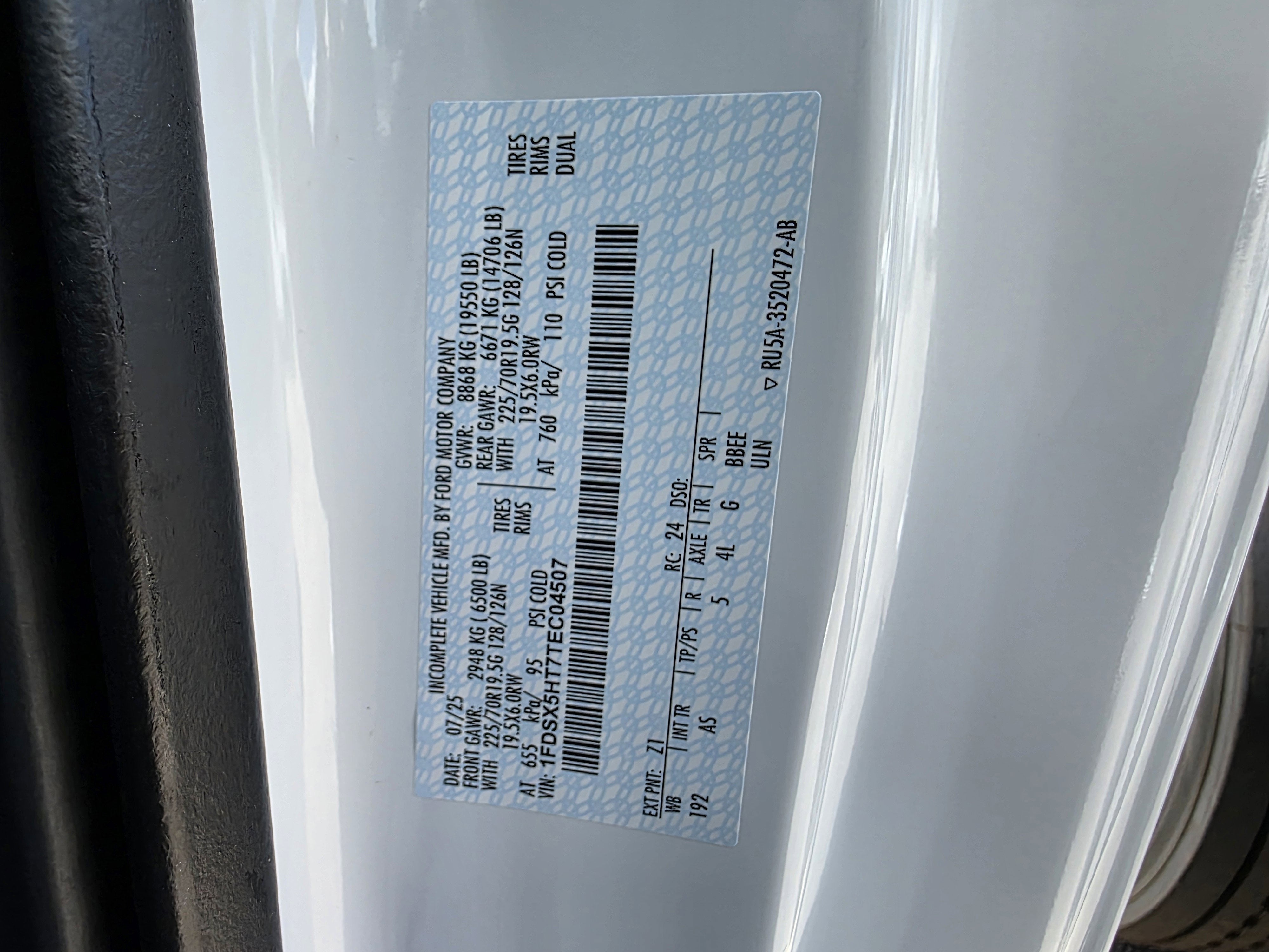 - Front Tire Size: LT225/70SR19.5