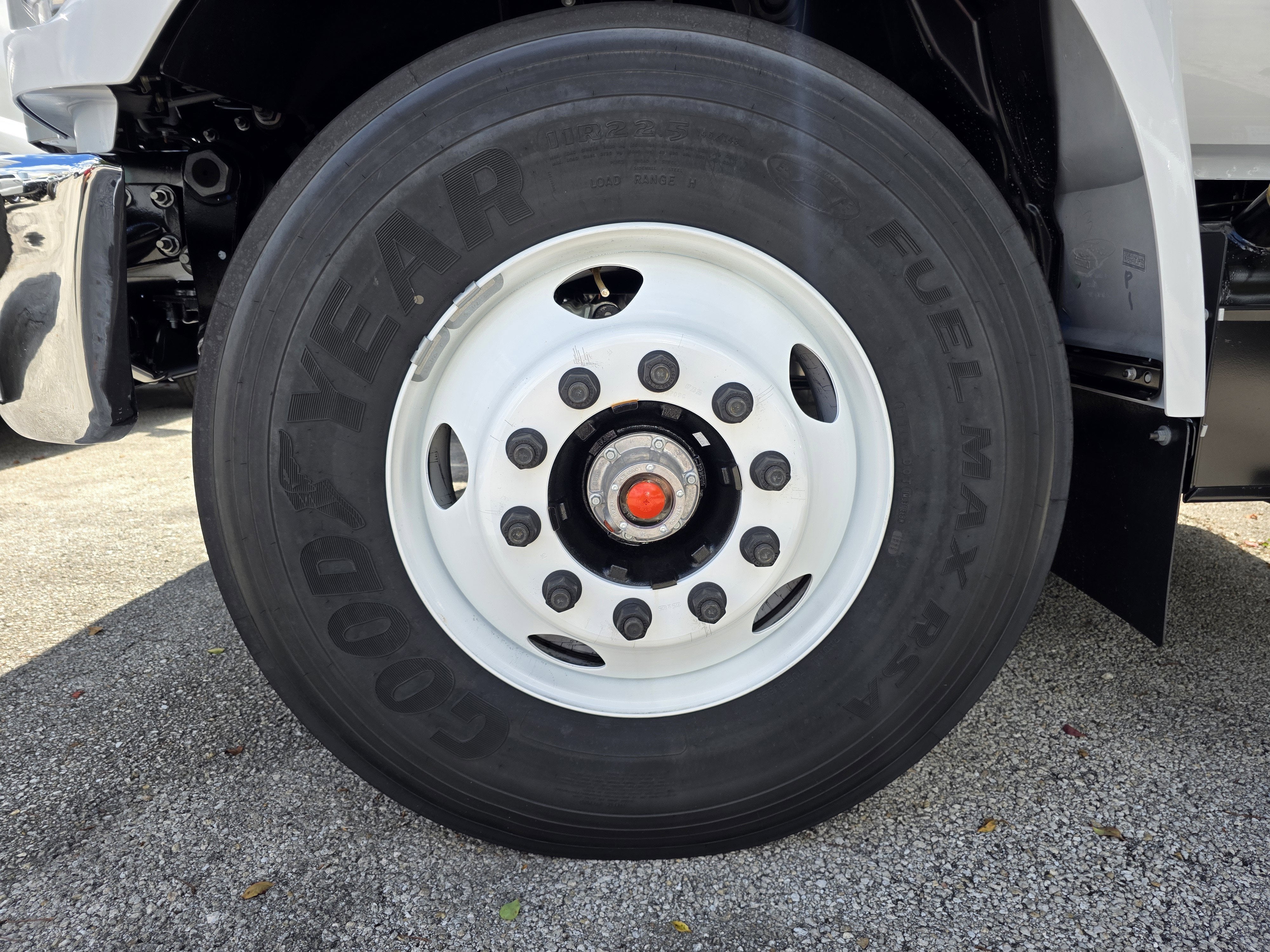 - Tires, Rear Four 11R22.5G Goodyear Fuel Max RSA (497 rev/mile)